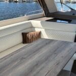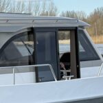 Stap door de glazen pui de ruime kajuit binnen en ervaar de royaal uitgeruste keuken en comfortabele rondzit. De kajuit, met hoge rugleuning en diepe zit, nodigt uit tot ontspannen samenzijn op het water.